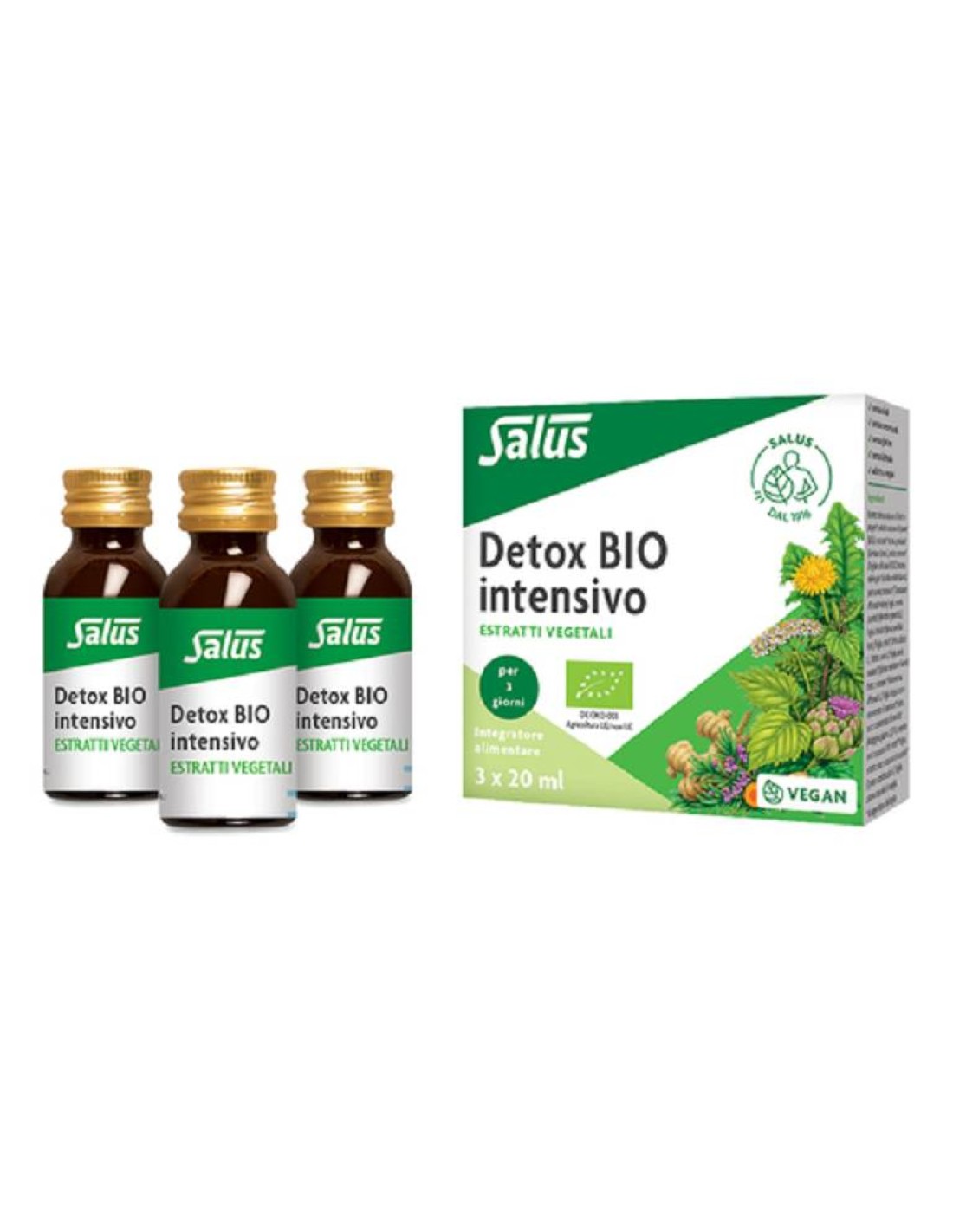 Trattamento di 20 giorni, per una detossificazione profonda. Depurativo con ortica, cardo mariano e carciofo, tarassaco e tè verde hanno un effetto drenante, vitamina C e curcuma hanno un'azione antiossidante